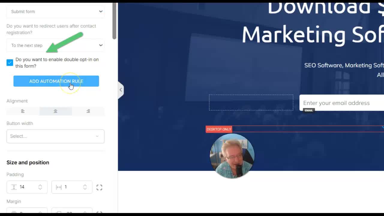 “If I want to control where people go after they sign up, I click one time and come over here.”