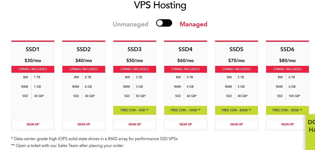 For only 2 gigs of RAM prices start at $79. per month. But wait there is more. You need to pay another $10. per month for cpanel. So now you are up to $90 per month for a VPS with 2 gigs of RAM. This is a huge leap from Inmotionhosting which gives you 4 gigs of RAM cpanel included for $30. per month.