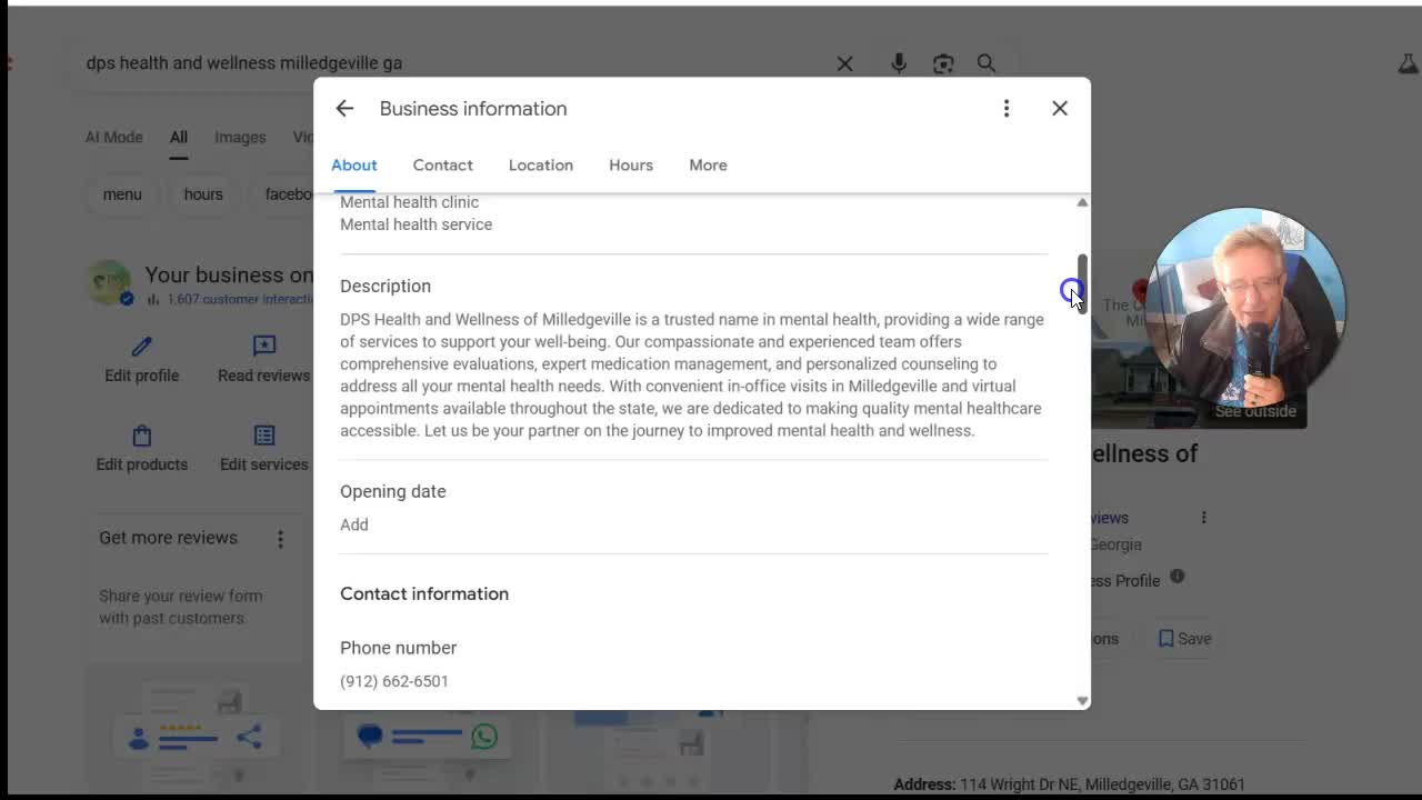 This clear geo-targeting tells Google, “Hey! We’re the psychiatrist for Milledgeville and all of Georgia for telehealth.”
