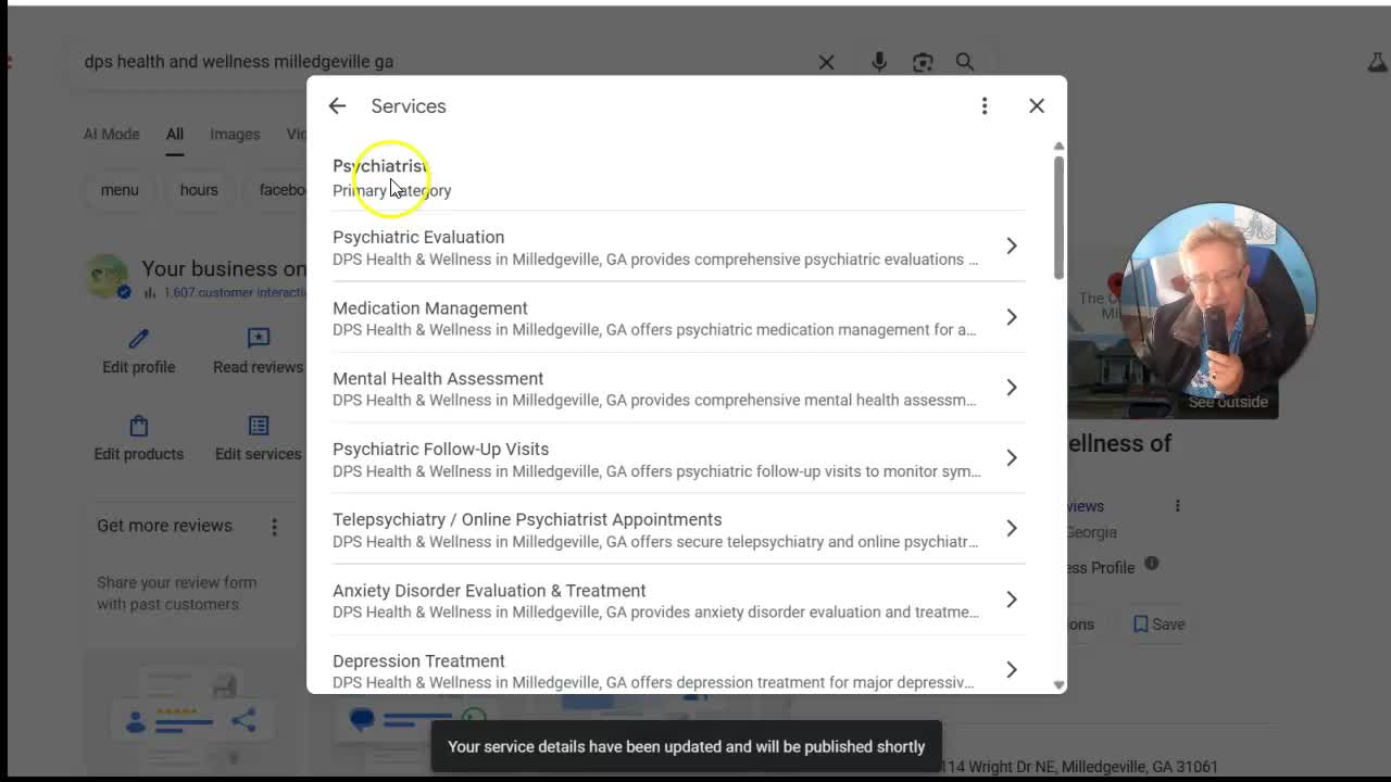 In my example, the psychiatrist only had the “psychiatrist” category. That’s it! We completely reworked the profile, packed in all the details, and filled out every possible field.